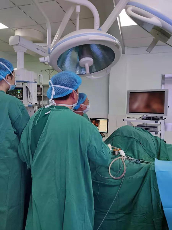 經(jīng)過近3個半小時(shí)的奮戰(zhàn),周旭陽主任率領(lǐng)的醫(yī)師團(tuán)隊(duì)與麻醉團(tuán)隊(duì)、手術(shù)室團(tuán)隊(duì)的精妙配合下,在腹腔鏡下將腸癌處病灶順利切除,標(biāo)本經(jīng)腹部小口子取出。同時(shí),相應(yīng)區(qū)域的血管離斷,神經(jīng)保護(hù),淋巴清掃都如期進(jìn)行,手術(shù)結(jié)束后,邱奶奶腹部僅開了個小口子。