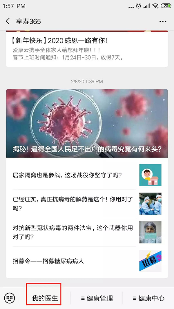 第二步:注冊(cè)成功后登錄, 點(diǎn)入左下方的“我的醫(yī)生”,即可與主管醫(yī)生在線咨詢