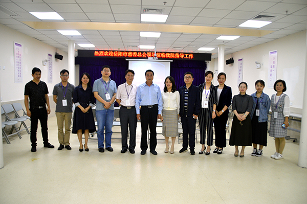 5月30日上午,岳陽市慈善總會(huì)會(huì)長陳志剛、市慈善辦主任袁康、市慈善辦副主任張璐一行3人來我院參觀指導(dǎo),愛康醫(yī)院曹學(xué)東、周春燕、田野等院領(lǐng)導(dǎo)陪同。