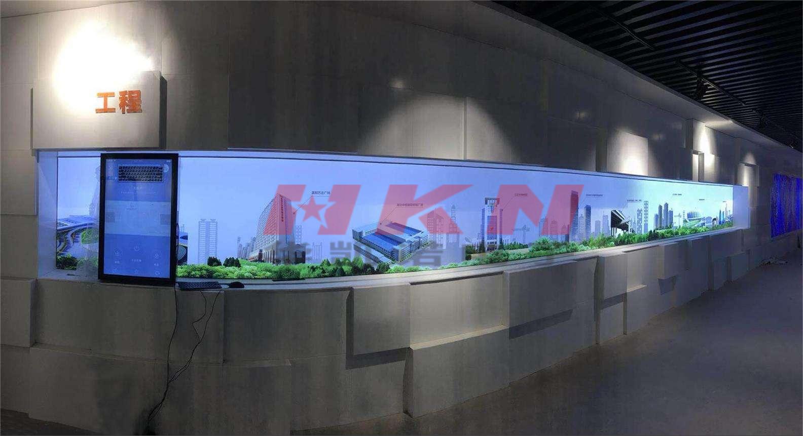 為了滿足展廳展示的需要,在場(chǎng)地受限的情況下,可以采用直線滑軌加弧形滑軌的方式,平滑過(guò)渡曲面,延長(zhǎng)滑軌屏滑動(dòng)范圍。同時(shí)增加科技感,增加視覺(jué)觀賞感。