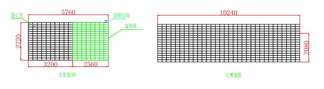客戶要求:在房間的兩側(cè)端LED幕,分別取2.56米寬的屏幕通過動力裝置分別旋轉(zhuǎn)160度,與正前方大屏幕形成三折幕的LED屏幕。且地面不能有軌道,用遙控器可實現(xiàn)隨時開合、暫停