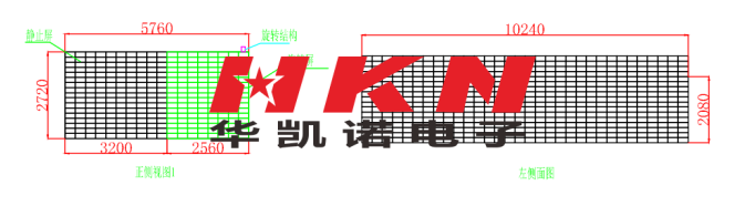 如圖所示:用P1.25的LED屏圍成了一個(gè)房間,尺寸為:長10.24米 寬5.76米 高2.88米