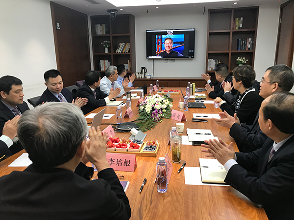 李培根院士與集團(tuán)高管們的見面會(huì)上,通過網(wǎng)絡(luò)連接了遠(yuǎn)在加拿大的集團(tuán)北美總部辦公室,集團(tuán)董事長(zhǎng)王東博士在地球的另一端和武漢總部會(huì)場(chǎng)進(jìn)行視頻連線。會(huì)上,集團(tuán)董事長(zhǎng)王東博士首先向在座的高管們隆重介紹了李培根院士加入集團(tuán)的情況。他說:“非常榮幸,也非常激動(dòng),能邀請(qǐng)李院士加入到我們愛康集團(tuán),成為我們聯(lián)席董事長(zhǎng)。我跟李院士認(rèn)識(shí)至今已經(jīng)十五年了,共同的價(jià)值觀讓我們結(jié)下不解之緣。回首十五年來,李院士在我們集團(tuán)的發(fā)展中,參與了很多次重大決策,對(duì)修訂《愛康基本法》也提出了很多指導(dǎo)性意見。”