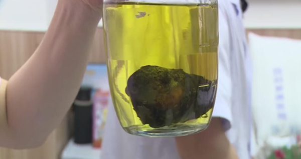 膽結石很多人都有,但茄子大小的結石你見過么?對于常人來說,人體膽囊內膽結石如果超過3cm,就已是非常少見的了。7月中旬,岳陽愛康醫(yī)院普外科成功在87歲喻奶奶的膽囊體內取出了一枚10多厘米長、5厘米寬巨大膽結石,形狀有如茄子,差點把膽囊撐破。
