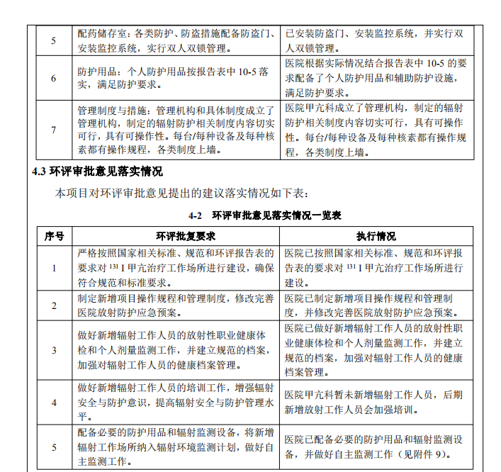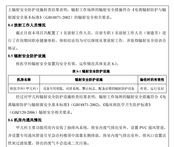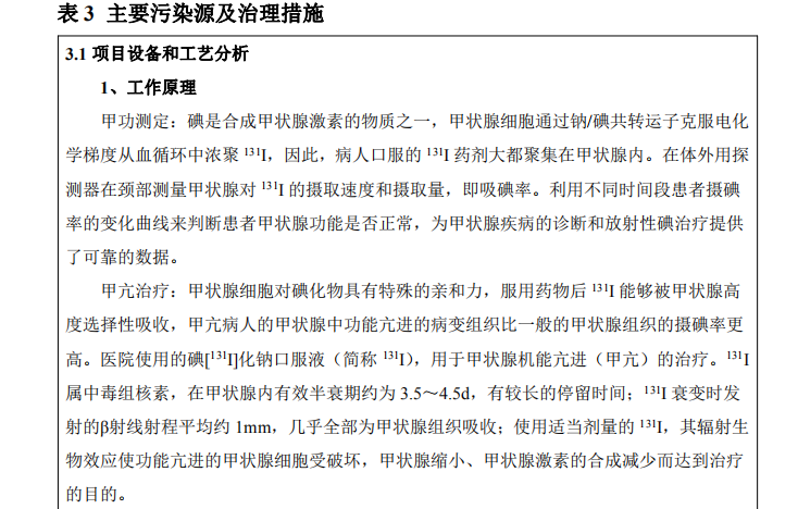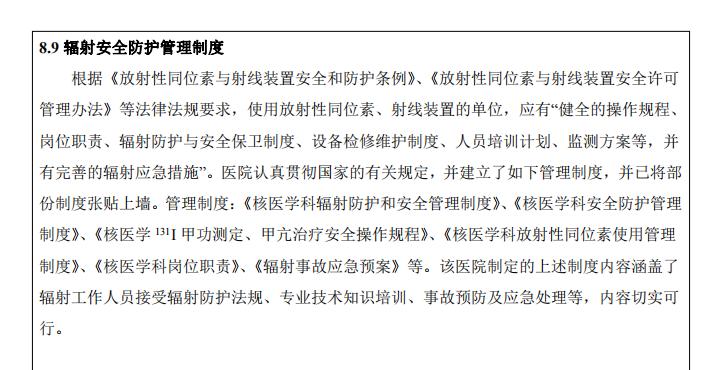 本次驗(yàn)收為?個(gè)?級?密封放射性?作場所,利? 131I 開展甲亢治療,與環(huán)評報(bào)告和批復(fù)?致。