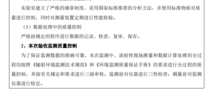 (3)積極配合?態(tài)環(huán)境部?的?常監(jiān)督檢查,采取“?檢”與“委托檢測”相結(jié)合,定期檢查安全防護(hù)設(shè)施,保證放射?作場所的各項(xiàng)輻射安全措施能正常運(yùn)?,保證各安全邊界的輻射?平符合國家標(biāo)準(zhǔn)。