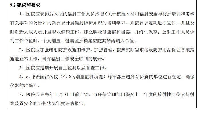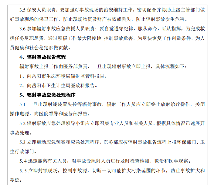 (4)進(jìn)?步完善輻射事故應(yīng)急處理預(yù)案和輻射防護(hù)管理制度。加強(qiáng)放射?作場所的組織管理?作,切實(shí)執(zhí)?相關(guān)管理制度及操作規(guī)程,保護(hù)放射?作?員。